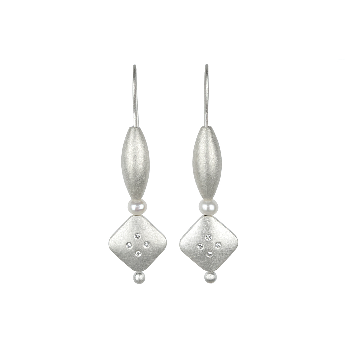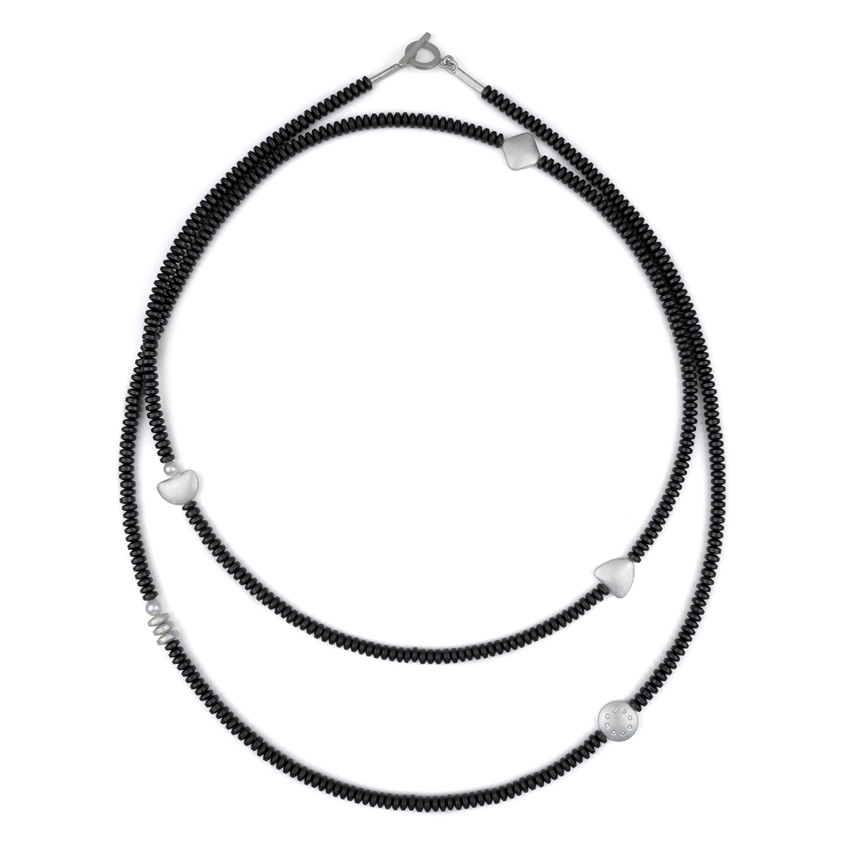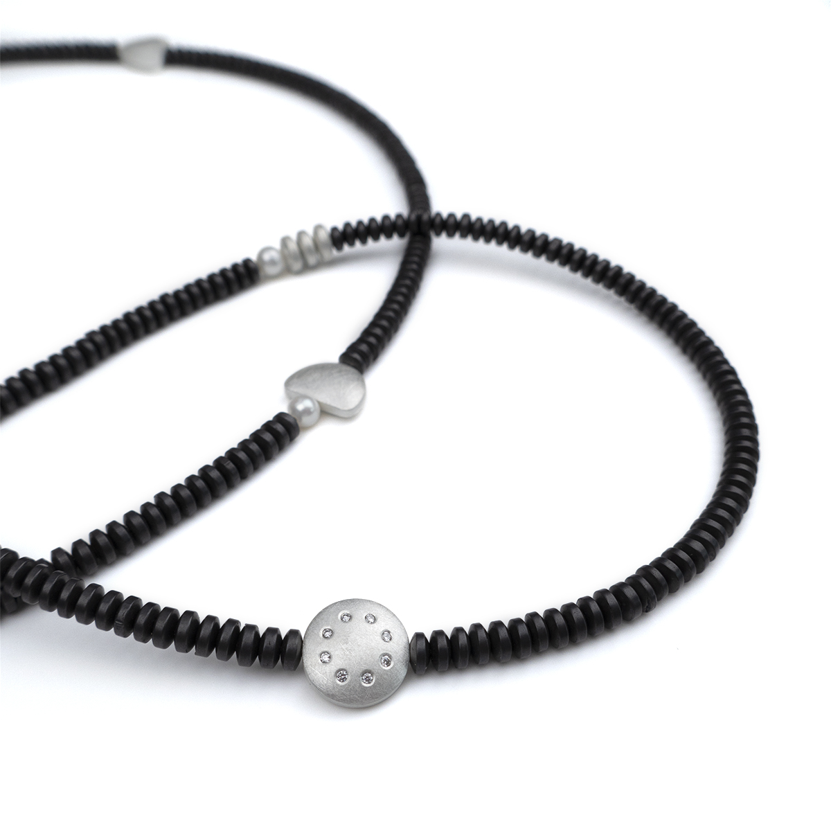 Sterling silver, diamonds, pearls, hematite