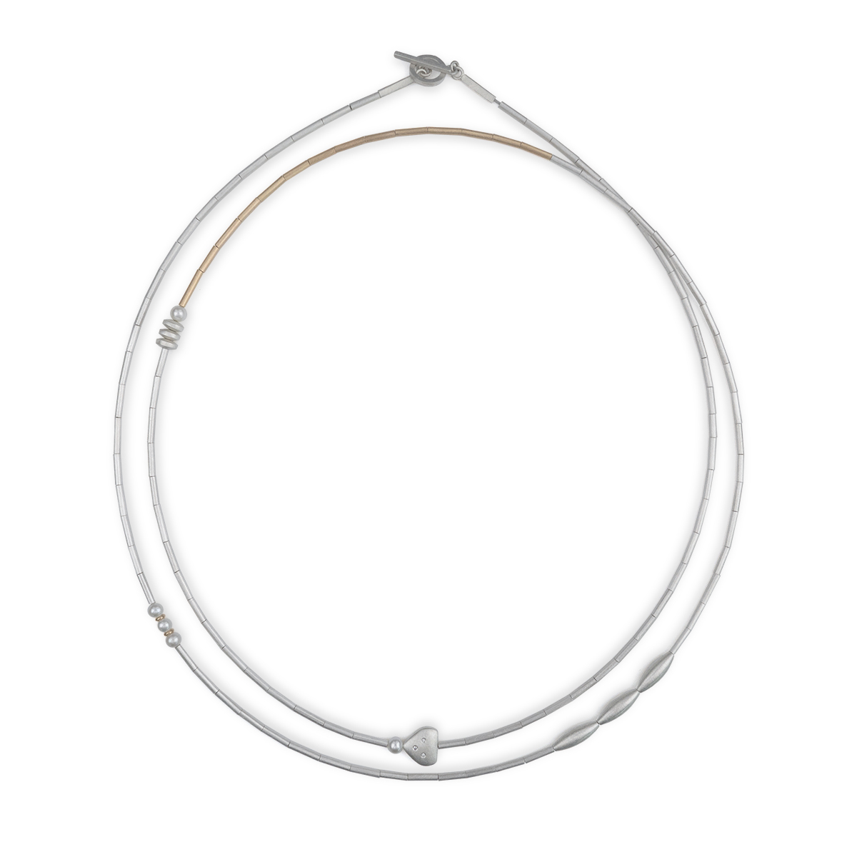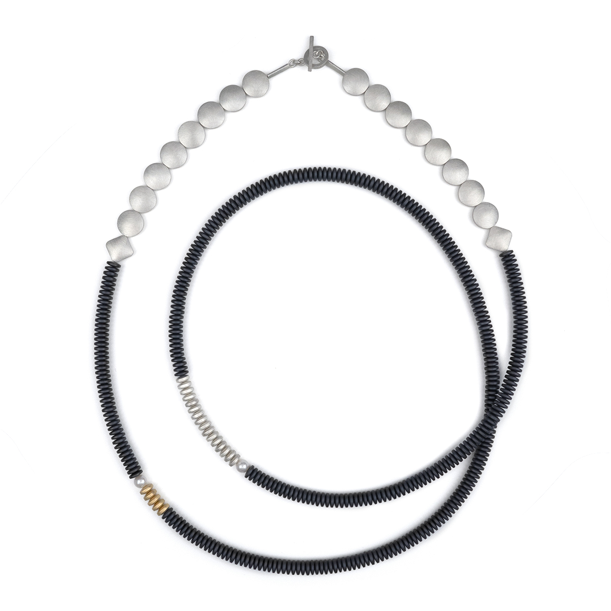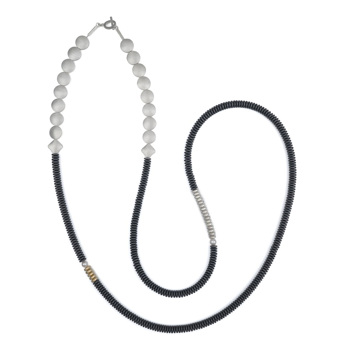 Sterling silver, 9ct gold, pearls, hematite