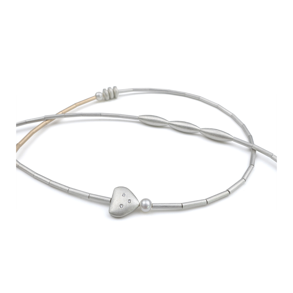 Sterling silver, 9ct gold, diamonds, pearls